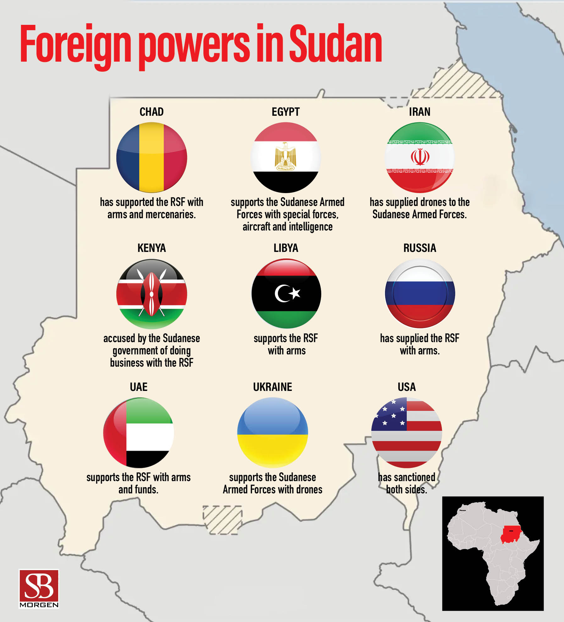 Russia's backing of General al-Burhan at the UN Security Council comes at a price. In return, Russia gains strategic benefits, including a naval base in Port Sudan on the Red Sea. Initially signed with Omar al-Bashir, this agreement was reaffirmed after Burhan confirmed its continuation, which led to Russia's full endorsement of the SAF. The SAF's participation in ceasefire talks is conditional, likely due to their belief in gaining ground. By late 2024, the RSF had made territorial advances, especially in Darfur, Khartoum State, Kordofan, and Gezira, while the SAF held key areas like Port Sudan and parts of the north. The situation remains fluid. The UAE's alleged support for the RSF is a major obstacle to peace. The conflict is becoming increasingly internationalised due to the lack of effective mechanisms to pressure both sides towards peace.