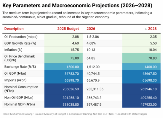 Nigeria’s Federal Executive Council has approved Nigeria’s 2026–2028 Medium-Term Expenditure Framework, outlining fiscal targets and spending priorities for the next three years. Budget and Economic Planning Minister Atiku Bagudu said federal revenue for 2026 is projected at ₦34.33 trillion, including ₦4.98 trillion from government-owned enterprises, about ₦6.55 trillion lower than the 2025 estimate. Statutory transfers are expected to hit ₦3 trillion, while federal allocations will fall by about 16% to ₦9.4 trillion. Key assumptions approved include an oil production benchmark of 1.8 million barrels per day (mbpd) for budgeting (against a target of 2.6mbpd), an oil price of $64 per barrel, and an exchange rate of ₦1,512/$, reflecting expected fiscal pressures ahead of the 2027 elections. Finance Minister Wale Edun also announced the approval of a $100m AfDB youth investment facility and an Islamic Development Bank agricultural programme in Yobe, as President Tinubu urged capital spending that drives growth and jobs.