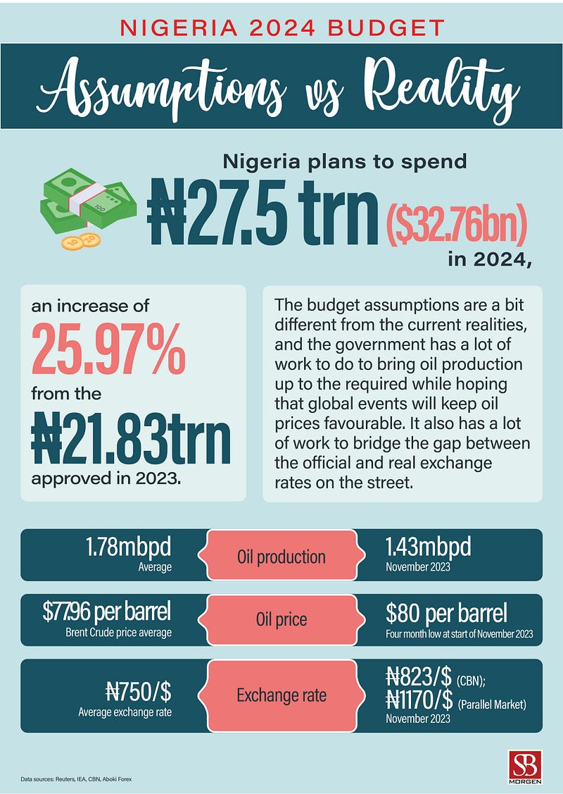 While we think that the oil assumption revisions are sound and grounded in the current realities of global and domestic outlook, oil production, which is currently at 1.43 million barrels per day and up from 1.23 million barrels per day in the previous month, is still behind the 1.78 million barrels per day target set in the 2024 budget submission. The last time Nigeria’s monthly production averaged 1.7 million per day was in May 2020. However, if the current trajectory continues, the target will be achievable, which can only mean positives for Nigeria’s precarious fiscal position. Meanwhile, it is still largely dependent on oil and gas for FX supply to the government, and the biggest current challenge in the official FX market is the supply of USD. Over the last few weeks, several politicians have said that the Tinubu administration took over a “dead economy” from its predecessor and that aggressive actions are required to give the economy a fighting chance. Like Mr Buhari, President Tinubu believes spending money, regardless of availability, is the best way to awaken the economy. However, while that appears reasonable on the surface, a deeper look shows that much government spending goes to waste in Nigeria due to corruption and lack of political will. Unless these are addressed, the only outcome is more debt burden on the Nigerian people. Additionally, while the Nigerian government’s stated goal of a ₦750 exchange rate may appeal to some, it is unclear how this target will be achieved. Given that the Tinubu administration has said it would converge the multiple exchange rates, we wonder how the exchange rate benchmark is still at variance with the I&E Window or black market rates. Analysing the actual budget, a breakdown shows that security will receive the highest allocation, getting 12% of the total budget. Education will get 7.9%, and health will get 5%, showing how much is unchanged in the country’s budgeting thinking. Nigeria’s budgets are usually grossly inadequate to meet the country’s most pressing needs, and this is no different. Finally, on the SERAP call, Nigerian state governments have a perennial mismanagement problem. They have become the prodigal sons who incur loans, mismanage whatever resources they have — or refuse to develop them — and wait for monthly allowances from the federal government. Some of the problems the federal government contends with are due to the inability of states to cater for their populations. Even if the World Bank withholds loans from them, several parties are willing to give loans to states backed by a sovereign government at a higher interest rate. It is, therefore, uncertain that SERAP’s approach will fix the bad behaviour of Nigeria’s subnational governments.