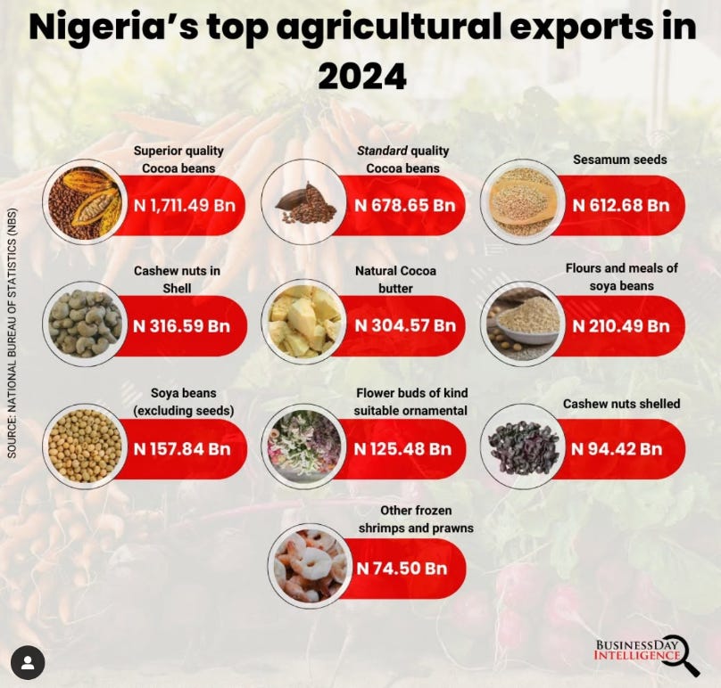 Nigeria's agricultural trade value surged 304% in 2024 to ₦8.2 trillion, driven by a volatile naira.