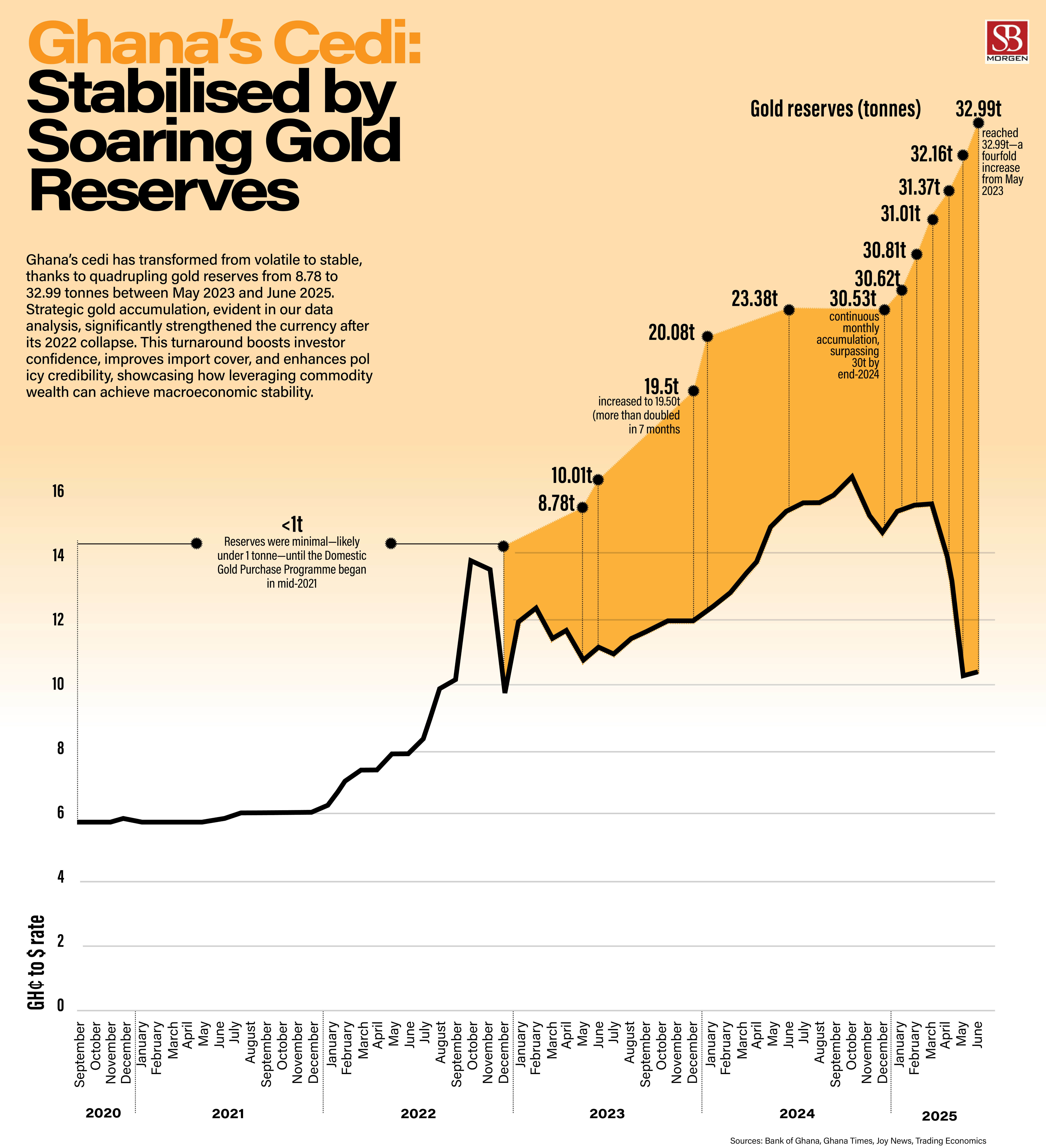 In 2025, Ghana's economy rebounded strongly as its currency, the cedi, appreciated significantly and national foreign reserves hit a record high.