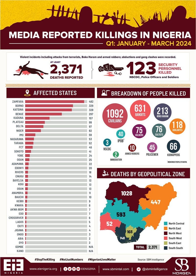 No fewer than 23 members of Nigeria’s Civilian Joint Task Force (CJTF) were killed by armed groups in separate attacks in Borno and Sokoto. Reuters reported. Suspected members of the Islamic State West Africa Province (ISWAP) used an Improvised Explosive Device (IED) to blow up a vehicle carrying some CTJF members in Borno. While en route to Maiduguri, their vehicle detonated an IED, resulting in the loss of nine lives and severe injuries to two others. Additionally, a second attack in Sokoto claimed the lives of 14 CJTF members, with several others reported missing.