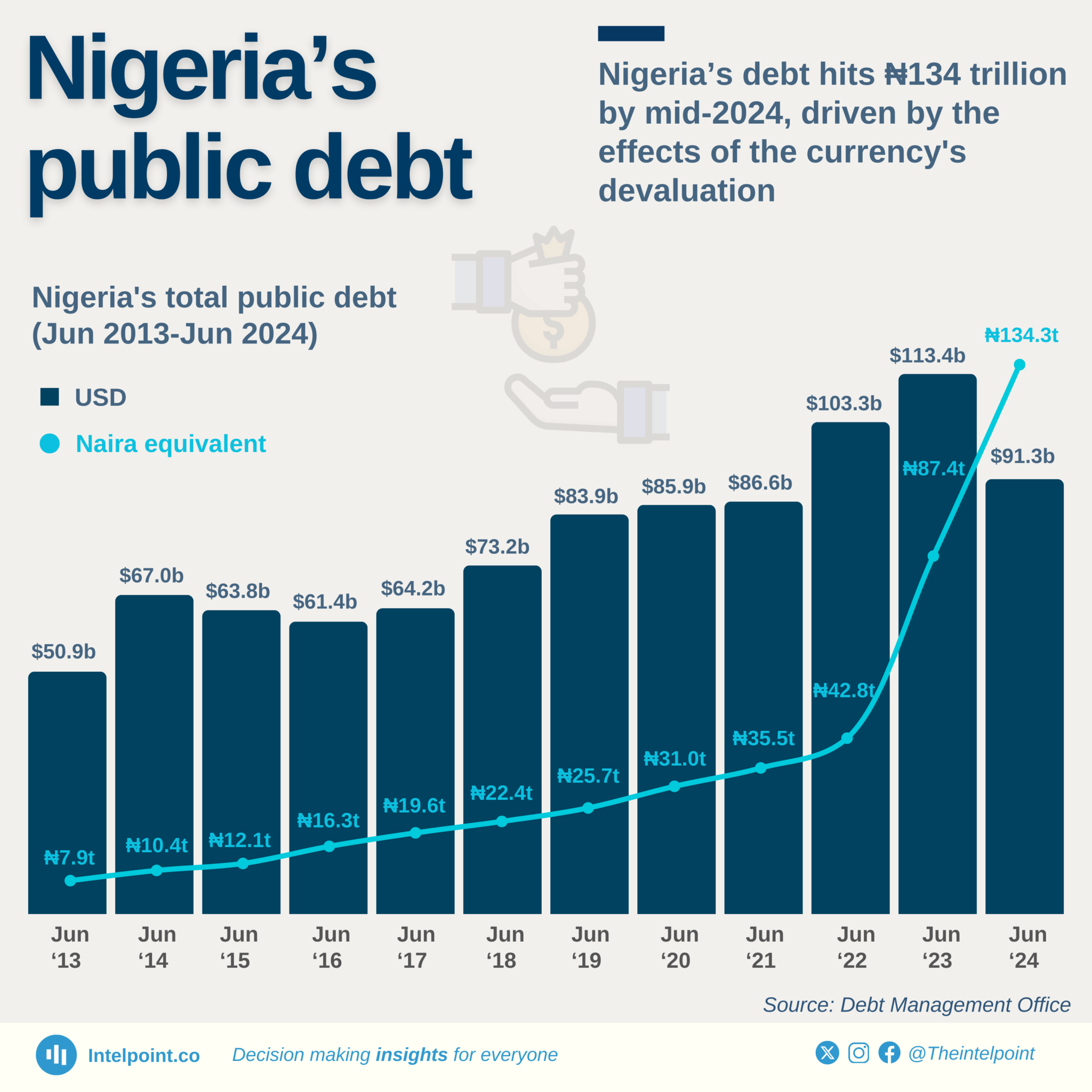 Nigeria's public debt rose by 6% to ₦142.3 trillion by September 30, 2024.