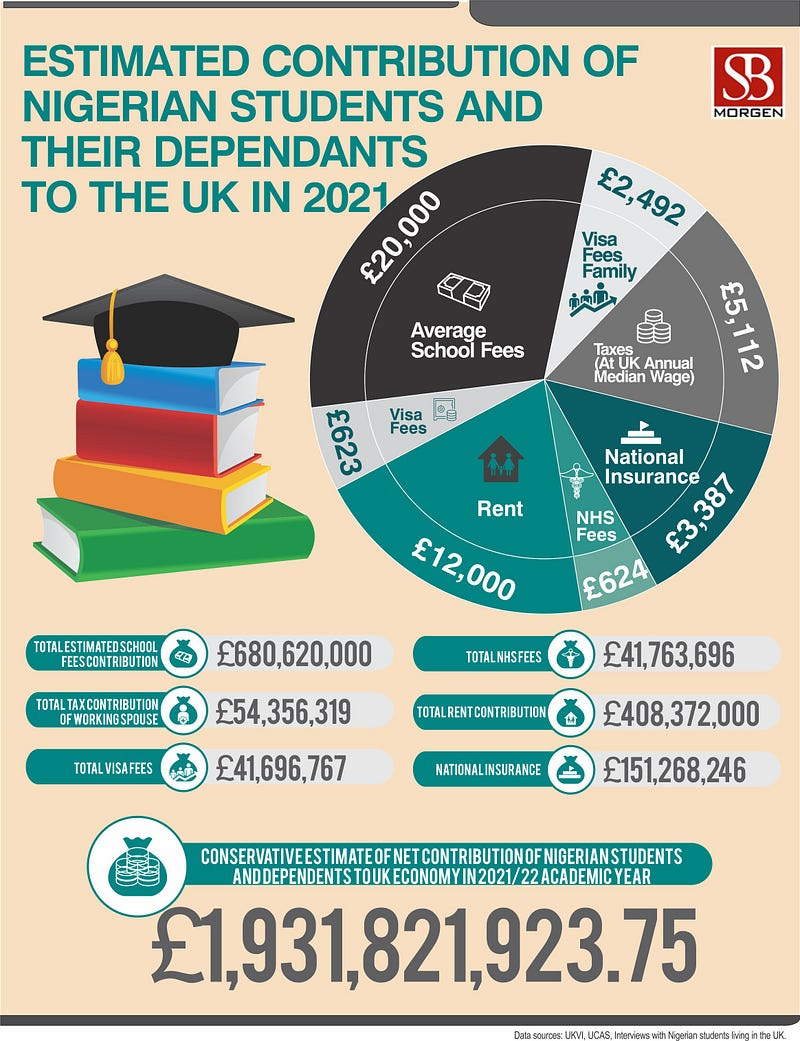 There are two perspectives to the UK’s decision. On the one hand, the UK government is doing what any sane government would do, protecting its social balance. Like many European countries, Britain uses a sizeable chunk of its tax earnings to pay out social benefits, and the government feels that an astronomical rise in dependents could be a burden on housing as well as benefit schemes if left to mushroom. With the pandemic and the energy crisis triggered by sanctions on Russia shooting up the cost of living, tufts of issues are already sprouting up for the UK government to nip. The net dependency ratio: the number of households receiving more benefits than tax, is at a historic high of 54%. Just 40% of adults in the UK raise 83% of the UK’s tax income. Once you enter the UK and start working, you and your family are game to enter the welfare system. Free health care from the National Health Service is part of the largesse derivable from this setup. Nurses and junior doctors in the UK are already lobbying for increased pay. Ambulance waiting times are high, and the UK government appears determined to get to grips with ensuring its carefully manicured social lawn does not get trampled on. At the same time, the lawn’s attractiveness appeals to Nigerian families, who believe they can pay taxes and live a safe life within a functioning system. In 2019, the UK granted 1,586 student-dependency visas to Nigerians. In 2022, the number skyrocketed to 69,293. Even though the students hope to be working once they are done with their Masters’s degrees, the number of dependents they bring in could create a drag on the system. In all, the UK gave out 135,788 student-dependency visas in 2022. The amount given to Nigerians was 44.866% of that total. For the system to work properly, it needs to be managed, and growth in the population of beneficiaries has to be regulated. This is what Nigerians do not see about the UK government’s policy. On the other hand, the UK refuses to admit that their universities, health sector and the economies of many university towns depend on these foreign students. In the build-up to delegitimise a perfectly legal immigration route, SBM published a chart to show the direct contributions of Nigerian foreign students to the UK economy in 2021, at £2 billion. These students pay up to 10 times the home students’ school fees, significant NHS fees and rent in those university towns. Often, this is without access to government public spending, while their dependents pay taxes as they work. Painting these net positive contributors to the UK economy in the same light as some illegal immigrant incursion is the UK trying to eat its cake and have it: which is reminiscent of the mass hysteria of Brexit and the post-Brexit disorder where the UK tried to keep the benefits of the EU without the membership. Among other things, the most urgent lesson from the UK’s policy is how domestic politics drive foreign policy and aid politics abroad, which many Nigerians do not understand. Anti-immigrant feelings by far-right sections of the Conservative Party triggered Brexit. Home Secretary Suella Braverman’s policy has antecedents in her predecessors’ politics in the same period when Brexit happened; then home secretary Theresa May designed the anti-immigration policy of cutting back the waiting period for immigrant students in the UK to six months upon graduation, after which they would be deported for failure to find a job, a policy which Boris Johnson reversed to two years when he became Prime Minister. What Brexit did was expose Britain’s dilemma: to stem the rising pathological fear of immigrants, which politicians like Michael Gove and Nigel Farage latched onto, or to continue to play nice and welcome legal immigrants, who not only spend billions of pounds in school and visa fees but also stem the worst of the UK’s labour crisis which would have led to a depression if these student migrants and their dependents were not on hand to work. With the latest policy announcement, it appears that the UK has chosen to give in to its destructive intrusive thoughts despite objections from the Department of Education, who warned that the nearly £2 billion Nigerians spent in higher education in the UK in 2021, among others, was at risk of being taken elsewhere, giving an advantage to other Anglophone competition such as Australia and Canada. Beyond the banal furore on social media over the comments one Nigerian immigrant, Emdee Tiamiyu, gave to the British press, indicting Nigerians for abusing the visa system, there are several reasons why this policy might be short-lived. Key among those is the existence of geopolitical realities and competition from its Anglo-Saxon counterparts. The UK will face a labour shortage. This is the future for much of the Global North following a decline in birth rates. It will dent the post-Brexit “Global Britain” policy, which attempts to attract “the best and brightest” on paper. Expectedly, the news of the new restrictions came as a blow to many Nigerians who see Britain as an important route to a productive future. Nigeria churns out hundreds of thousands of graduates annually, but only a fraction of those get full-time employment, and of those that are employed, even fewer get jobs that are fulfilling financially and professionally. For decades, obtaining that overseas degree has positioned many Nigerian professionals for local and international success, and the UK has always been the preferred choice for Nigerian students due to cultural and linguistic ties. Considering that the average Nigerian has strong family ties, many Nigerians will no longer consider the UK as a viable option if they can no longer travel with family. This policy can deter such brains, who need the support service of their wives or husbands and the welfare of their children to be assured for them to function optimally. Nigeria is fighting a losing battle to keep its 