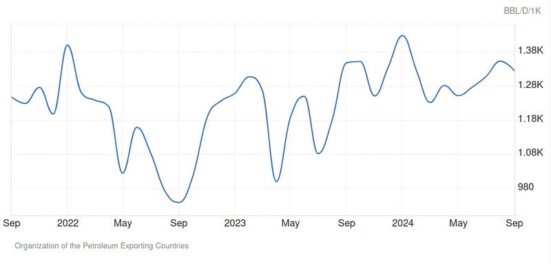 The Organisation of Petroleum Exporting Countries (OPEC) says Nigeria’s average daily crude oil production dropped to 1.32 million barrels per day in September 2024, representing a 2.2% decrease from August’s 1.35 million barrels per day. OPEC reported that the production data was based on direct communication with Nigerian authorities. Consequently, the country retained its position as the biggest oil producer in Africa, followed by Algeria and Congo, which produced 908,000 and 270,000 barrels per day, respectively, in the review month. OPEC’s secondary sources put Nigeria’s crude production at 1.40 million, down from August’s 1.43 million barrels per day.