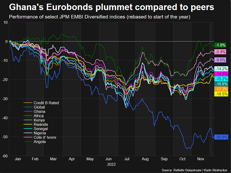 Ghana’s Finance Minister, Ken Ofori-Atta, has proposed a potential 30 to 40 percent nominal haircut for Eurobond holders as part of the country’s external debt restructuring. He also suggested that coupon rates should not exceed five percent, with final maturities not exceeding 20 years. Ghana’s total outstanding Eurobond debt amounts to $13.10 billion, as reported in the 2022 Annual Debt Report. Additionally, the International Monetary Fund (IMF) has revised Ghana’s net international reserves, forecasting an increase to 1.4 months of import cover for 2023, up from the earlier estimate of 0.8 months. The IMF also adjusted the net reserves for 2022 to 1.2 months, anticipating further growth to 2.1 months in 2024.